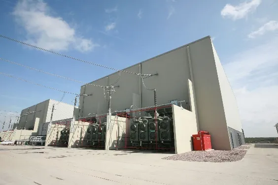Hieronder staat een foto van een converterstation van de BritNed-verbinding in de buurt van Londen.